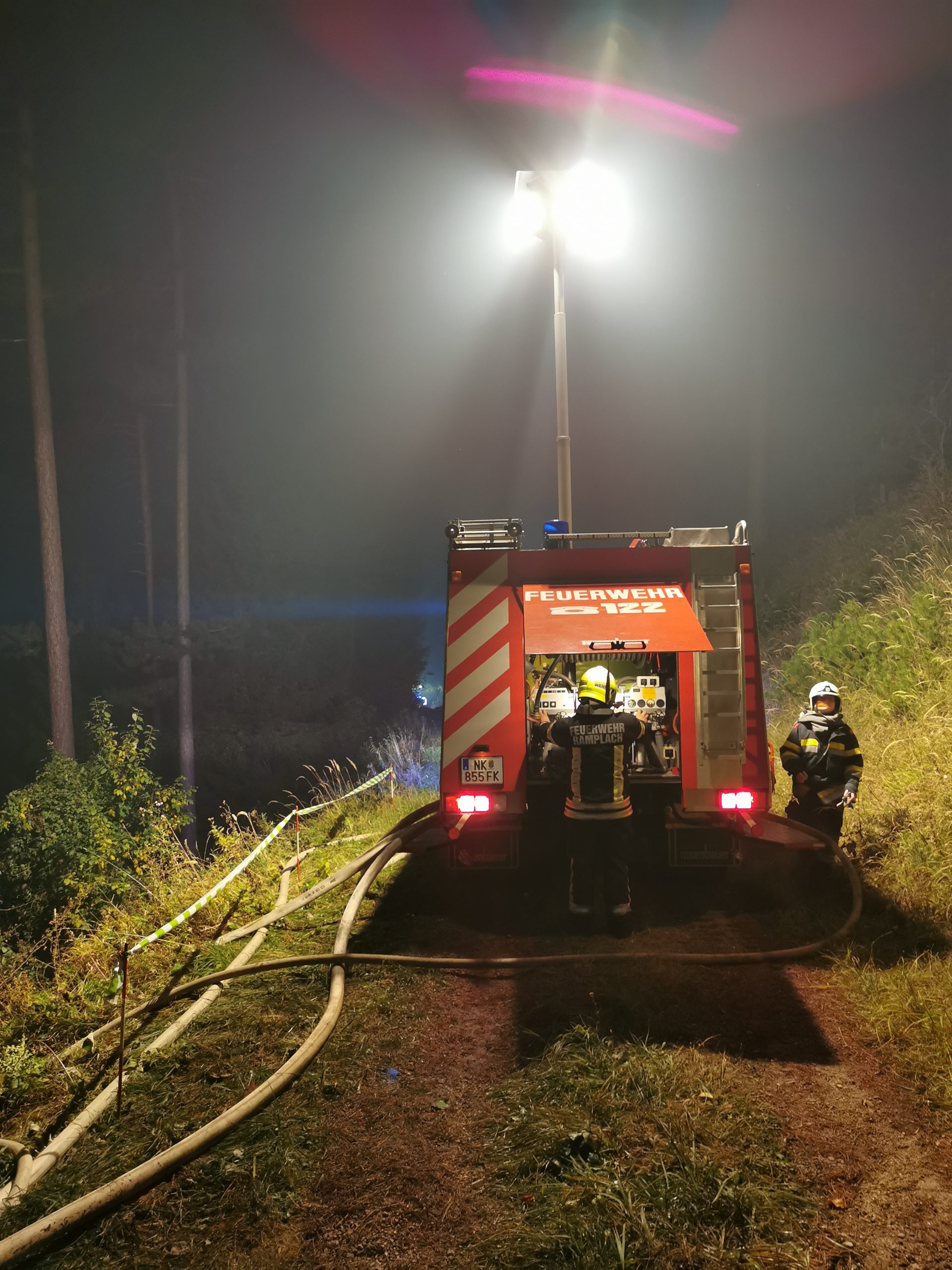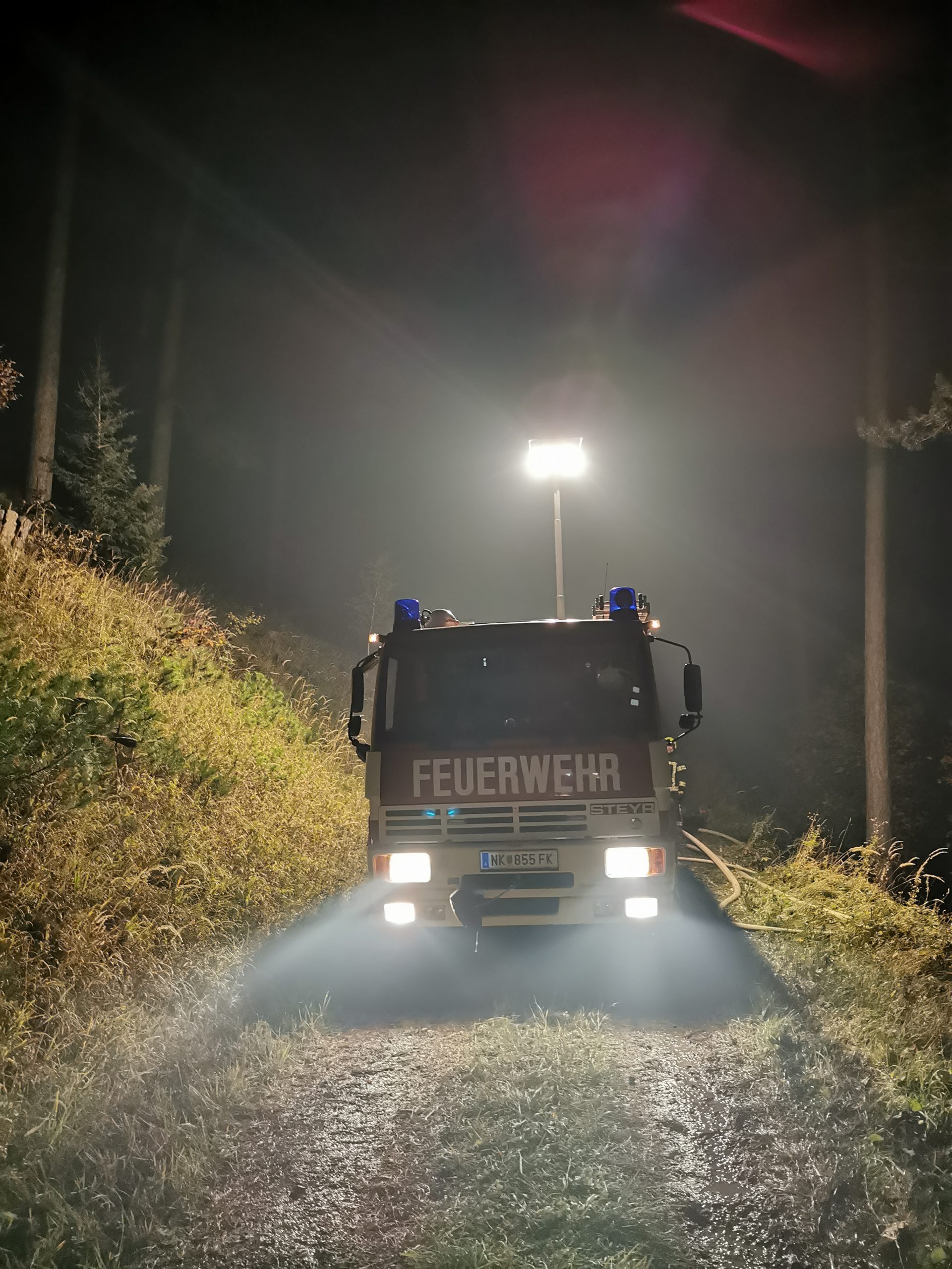 Am 25.10 wurden wir um 23:04 Uhr zur Unterstützung zu einem Waldbrand nach Hirschwang gerufen. Unsere Aufgabe war es unter anderem eine Relaisleitung mittels Tragkraftspritze und Tank Ramplach zu unterstützen. Da die Löschhubschrauber in der Nacht nicht fliegen konnten, galt es über die Nachtstunden eine weitere Ausbreitung des Feuers bestmöglich zu verhindern. So wurden immer wieder aufflammende Glutnester abgelöscht.Als der erste Teil unserer Mannschaft am 26.10 um ca. 8 Uhr morgens die Einsatzstelle Richtung Ramplach verließ, blieb ein Teil der aufgebauten Relaisleitung sowie unsere Tragkraftspritze an der Einsatzstelle. Die nachfolgenden Feuerwehren wurden auf unser Gerät geschult.