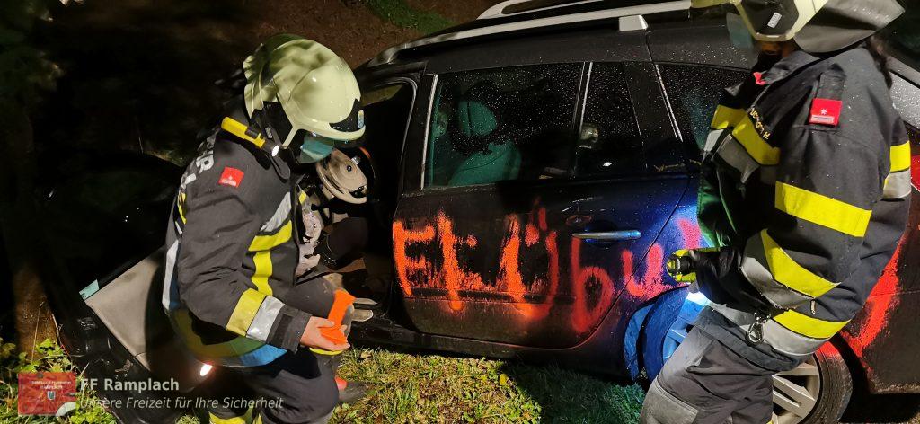 Auto im Graben! So lautete der Alarmtext der Übung vom 10. Oktober 2020. Nach der theoretischen Wiederholung über den Ablauf eines technischen Einsatzes, wobei es auch um Wiederholung der Ersten Hilfe Maßnahmen ging, wurde auch praktisch geübt. Ein Auto, welches einen Hang hinuntergefahren ist, musste mittels Seilwinde des TLFA´s geborgen werden. Zuvor wurde das Auto jedoch noch gegen Absturz gesichert und die ansprechbare PKW Lenkerin aus dem Unfallfahrzeug befreit.