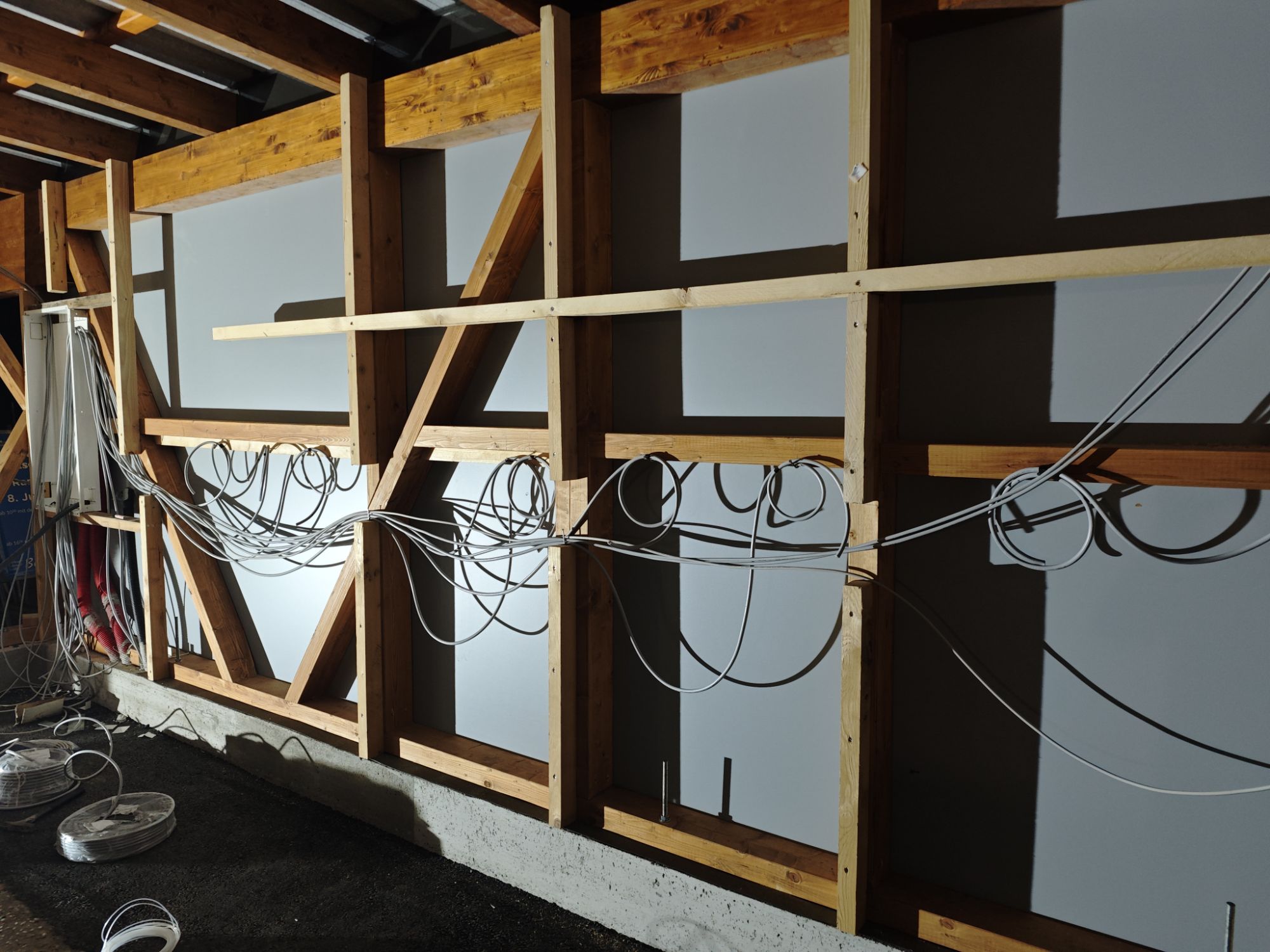 In den nächsten Wochen werden dann noch die Steckdosen und die Verteilerschränke fertiggestellt sowie ein elektrisches Rolltor montiert.