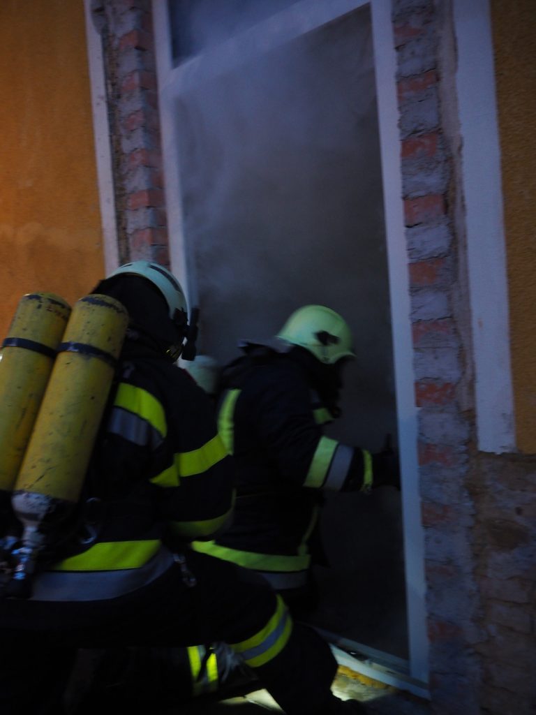 Der Atemschutztrupp konnte zwei Figuranten aus dem Gebäude befreien. Währenddessen wurde eine Wasserversorgung mit der Tragkraftspritze hergestellt, die Übungsselle ausgeleuchtet und die nebenstehenden Gebäude geschützt.