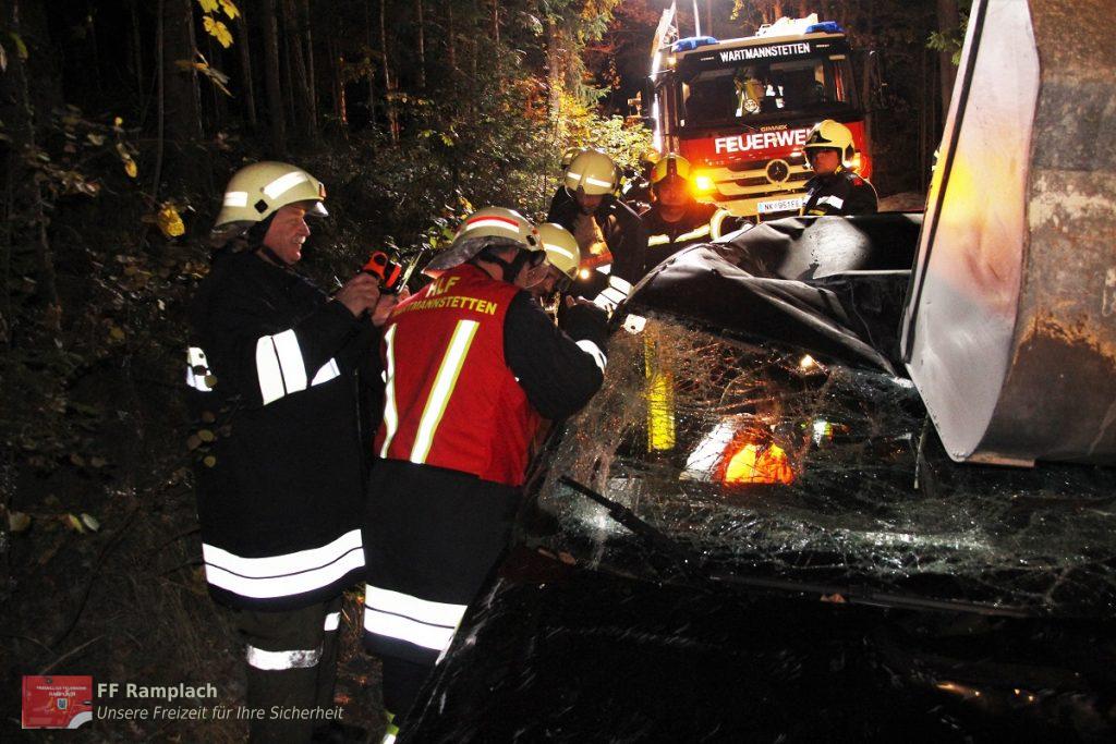Am 18. Oktober fand die Unterabscnittsübung, welche von der FF Straßhof ausgearbeitet wurde, statt. tt. Übungsannahme: Ein Verkehrsunfall eines Radladers und zwei PKWs mit mehreren eingeklemmten Personen. Ein PKW war unter der Schaufel des Radladers eingeklemmt, , der zweite PKW war drohte eine Böchung hinabzustürzen.